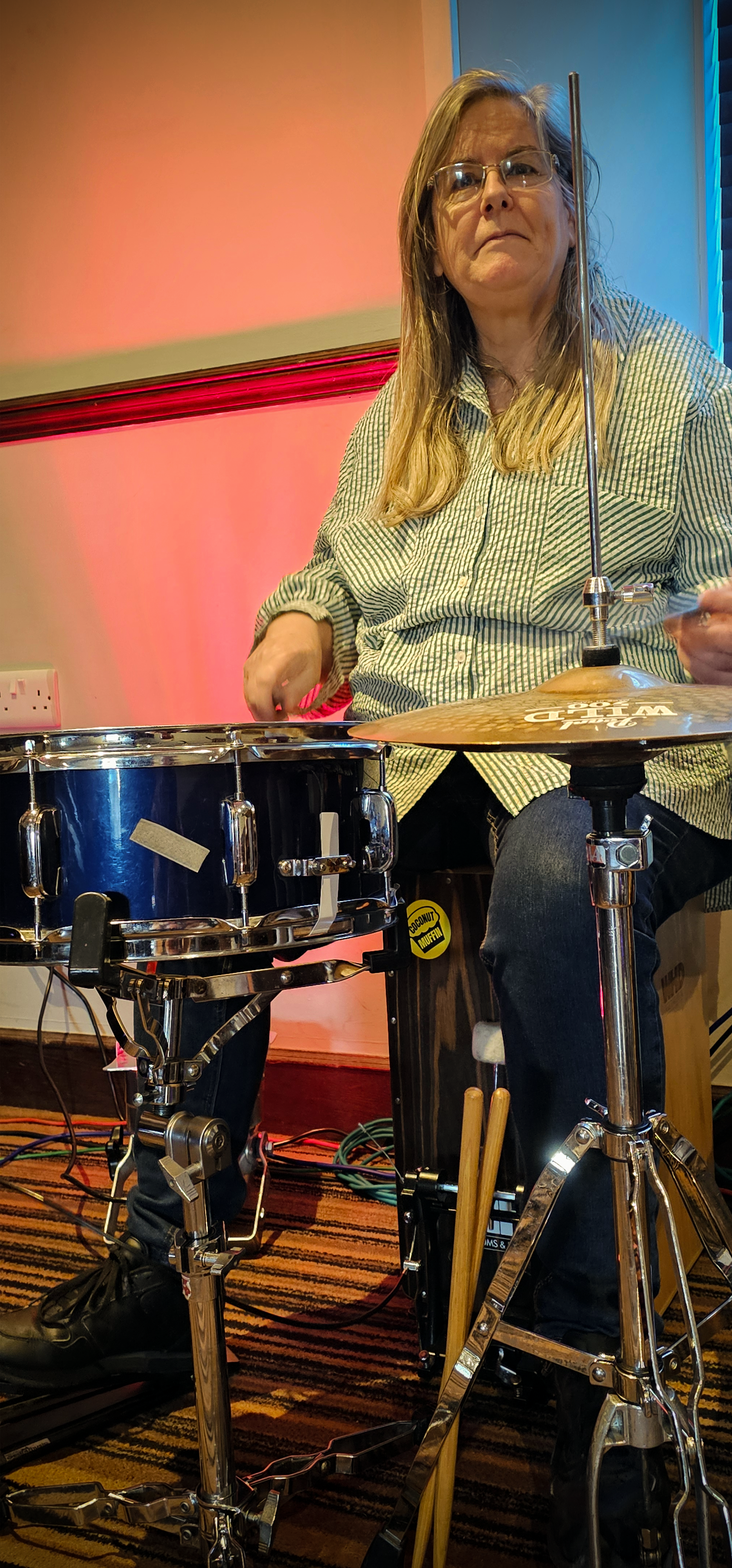 Lynda our most recent drummer trained and gained experience performing through pipes and drums. Her passion for music shows through her performance and lively sound.